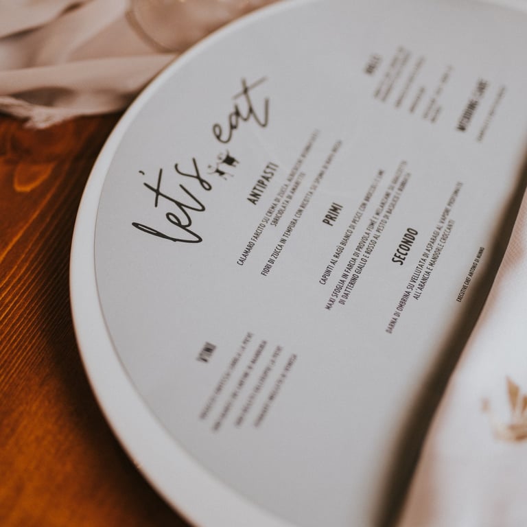 Menus, invitations, place cards — thoughtfully crafted to match your style and story. Paper goods with personality, made for moments that matter.